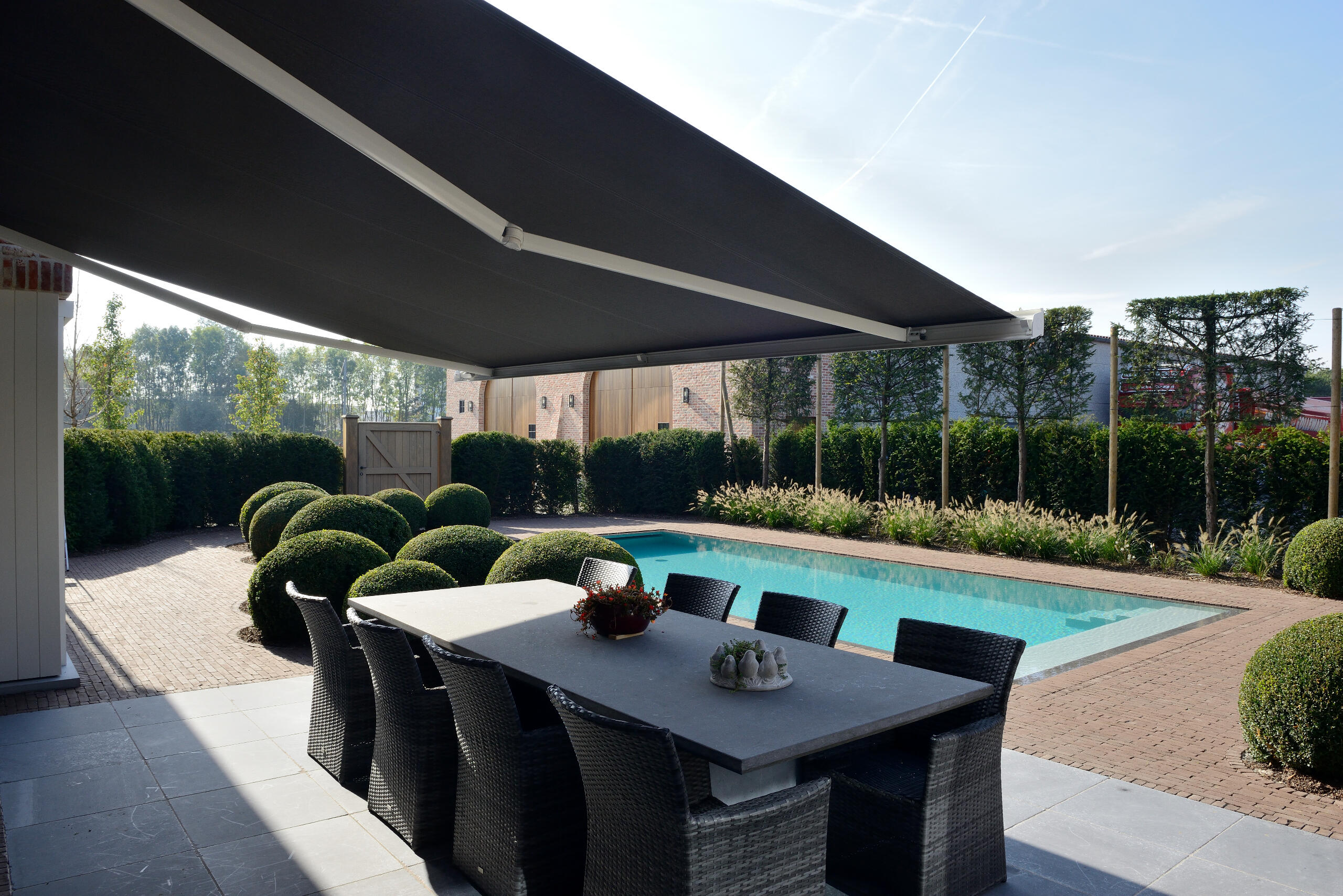 Un store banne qui se fond parfaitement au design de votre maison pour devenir ce petit supplément qui la rend unique .